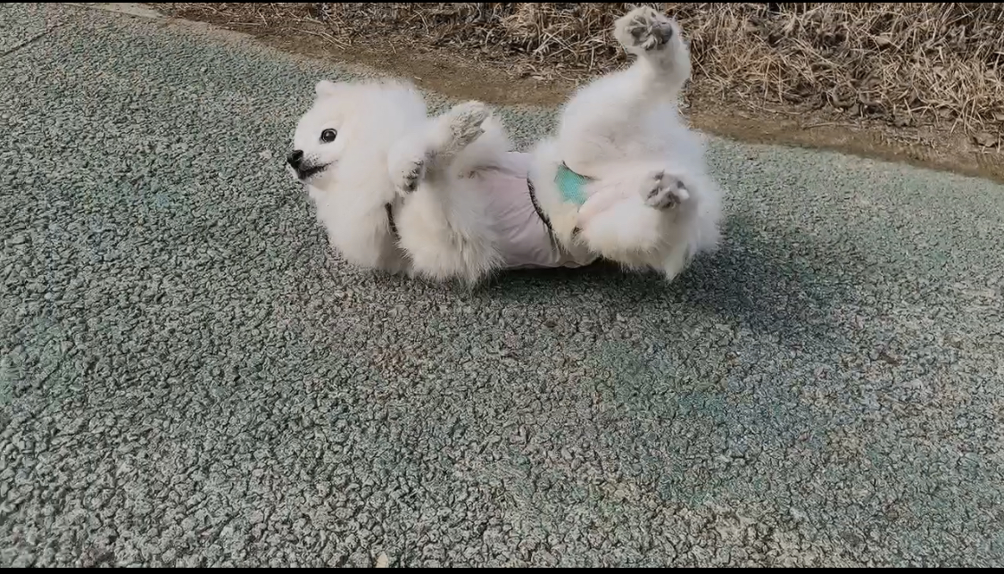 결국 지금은 많이 좋아져서 하네스 없이 목줄로 산책을 가능하게 되었습니다.